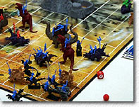 mounted by human riders. In the middle of the huge game board is a huge volcano that