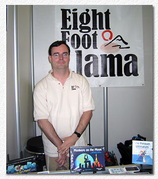 So beschreibt Jim Doherty sein Kartenspiel "Monkeys On The Moon" (MOTM), das 2002 erschien und von ihm auf der Spiel 2002 zum ersten Mal in Deutschland präsentiert wurde (Jim's Essen 2002 Bericht).